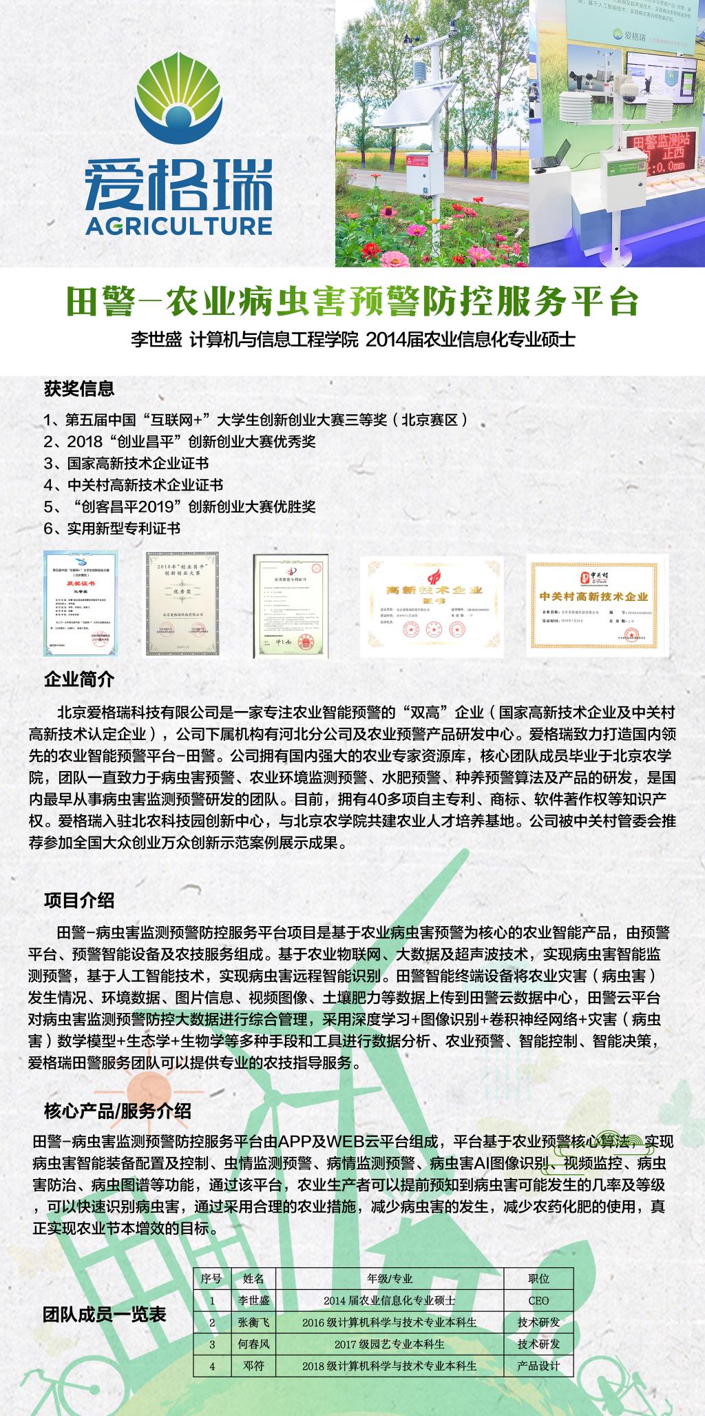 伟德国际VICTOR1946优秀老员工创新创业团队展示(三)——田警—农业病虫害预警防控服务平台