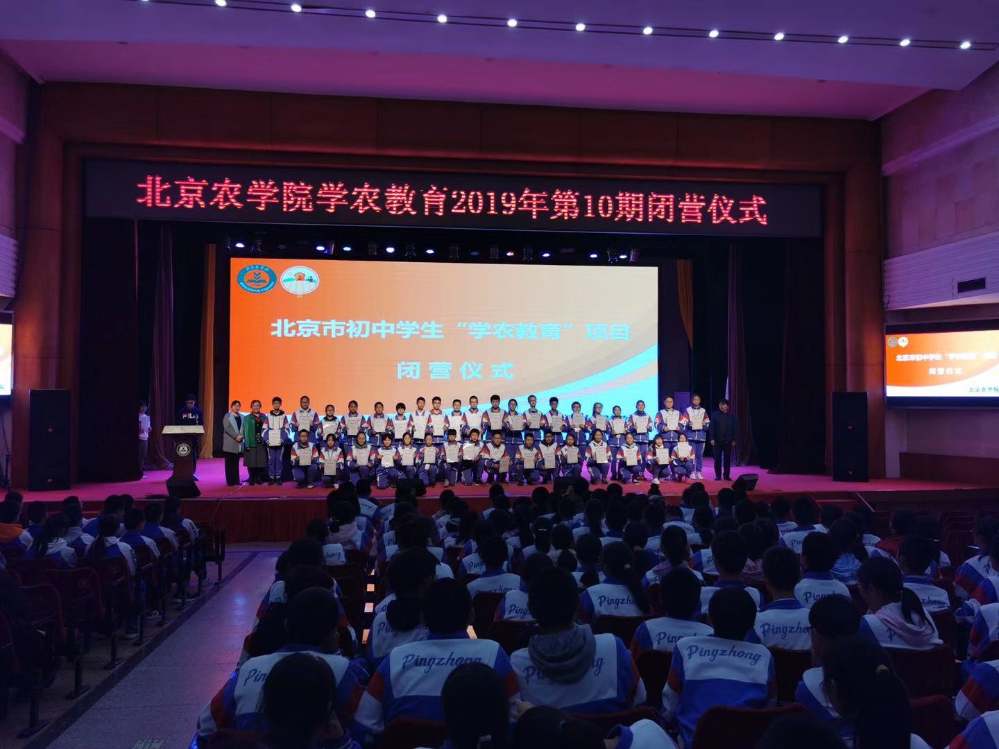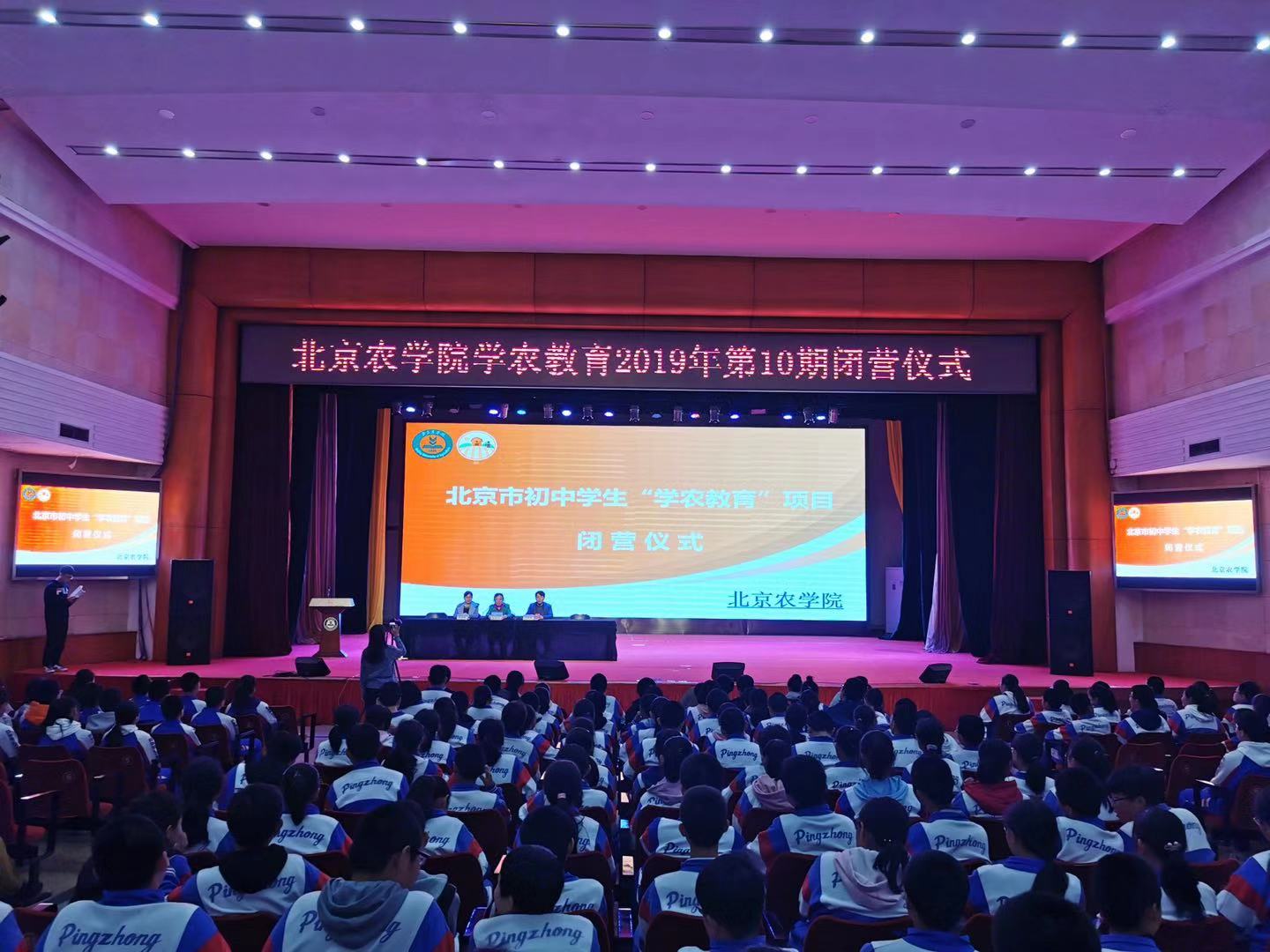 伟德国际VICTOR1946学农教育2019年第10期闭营于2019年10月25日下午13:30在伟德国际VICTOR1946礼堂举行,与会领导有北京市高井中学副董事长李淑敏,首都师范大学附属苹果园中学副董事长闫利民,伟德国际VICTOR1946北农耕读教育中心主管陈学珍。