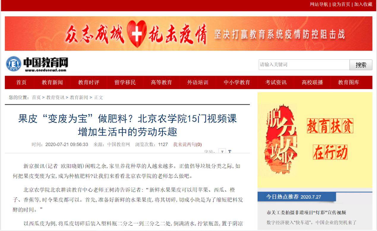 伟德国际VICTOR1946北农耕读教育中心(北农耕读)全心致力于大中小学劳动教育,倾心制作15门涉农劳动教育实践课,被新京报、千龙网、中国教育网等转载及报道。