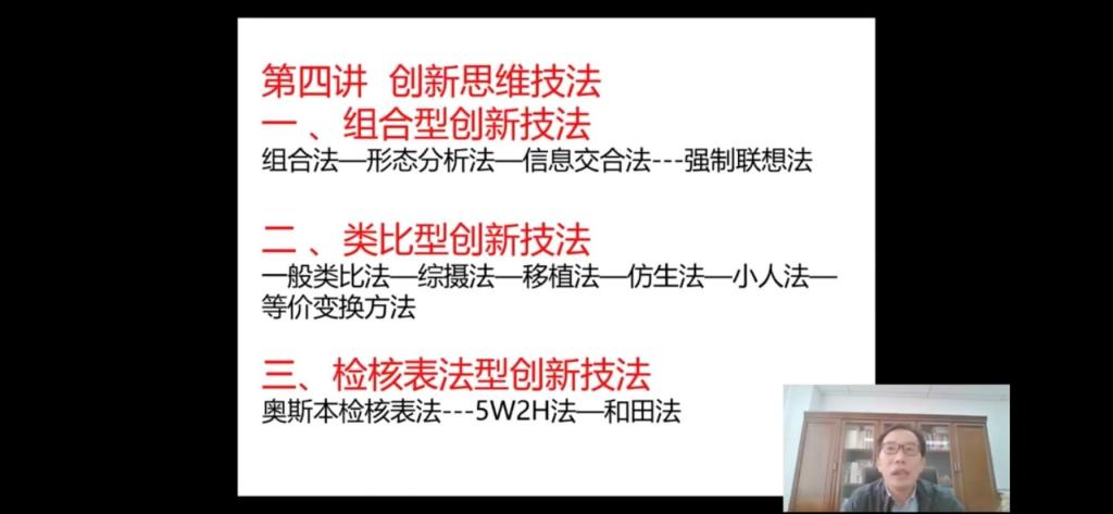 本次课程中,王滨教授具体从“组合型创新技法”“类比型创新技法”“检核表法型创新技法”3大类型12种具体方法为同学们进行了提高创新思维能力,深入理解创新思维的科学性和实践性,以及开展创新思维的具体技法。本期讲座有196人次在线观看并进行交流。