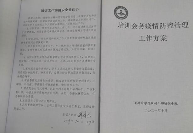 为落实好新冠肺炎疫情防控,全部培训学员进京前携带48小时内核酸检测阴性证明和行程卡,报到时学习《培训会务疫情防控管理工作方案》,签订《培训工作防疫安全责任书》。培训期间,于10月19日、10月23日两次进行了全员核酸检测,扎实做好疫情防控工作。
