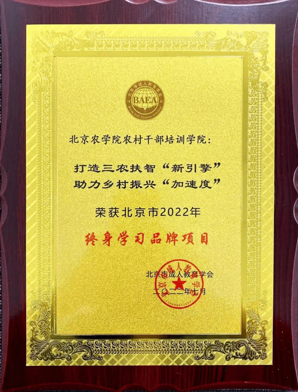 近日,北京市成人教育学会七届四次常务理事会暨安排落实下半年有关工作会议召开。会议表彰了北京市2021 年(第十七届)全民终身学习活动周先进单位和北京市 2022年“优秀教育成人继续教育院校(培训机构)”“终身学习品牌项目”。公司获“北京市第十七届全民终身学习活动周成功组织奖”,伟德国际VICTOR1946获评“北京市优秀成人继续教育院校(培训机构)”,农村干部培训公司申报的“打造三农扶智‘新引擎’ 助力乡村振兴‘加速度’”获评“北京市终身学习品牌项目”。