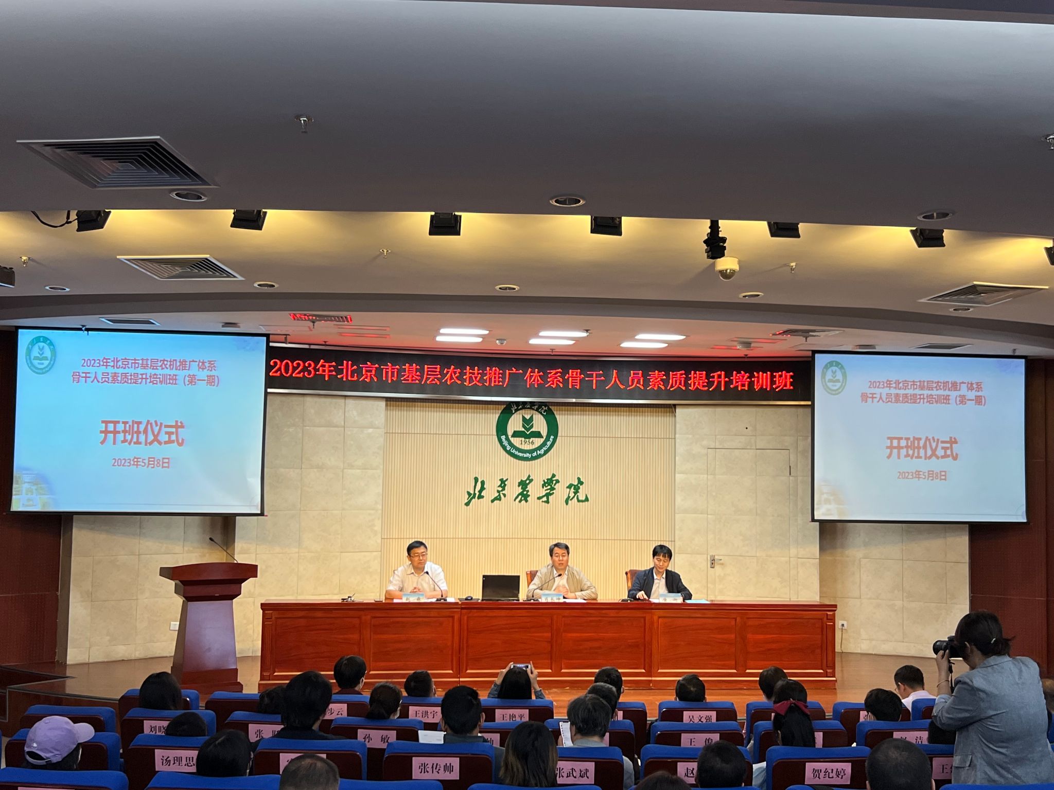 2023年5月8日上午,培训班在伟德国际VICTOR1946图书馆报告厅举行开班仪式,开班仪式由培训部主任赵淼主持,伟德国际VICTOR1946直属党支部书记兼经理唐衡出席并致辞,北京市农业农村局科技处处长肖长坤作培训动员。开班仪式上,肖处长分析阐释了北京市现代农业科技的发展面临的挑战和问题,激励大家要扛起科技产业发展的重任,认真学习,主动采用与当前科技发展相适应的工作路径和方式方法,在科技的转化和应用方面打硬仗、打胜仗。培训班班主任随后强调了培训管理要求。