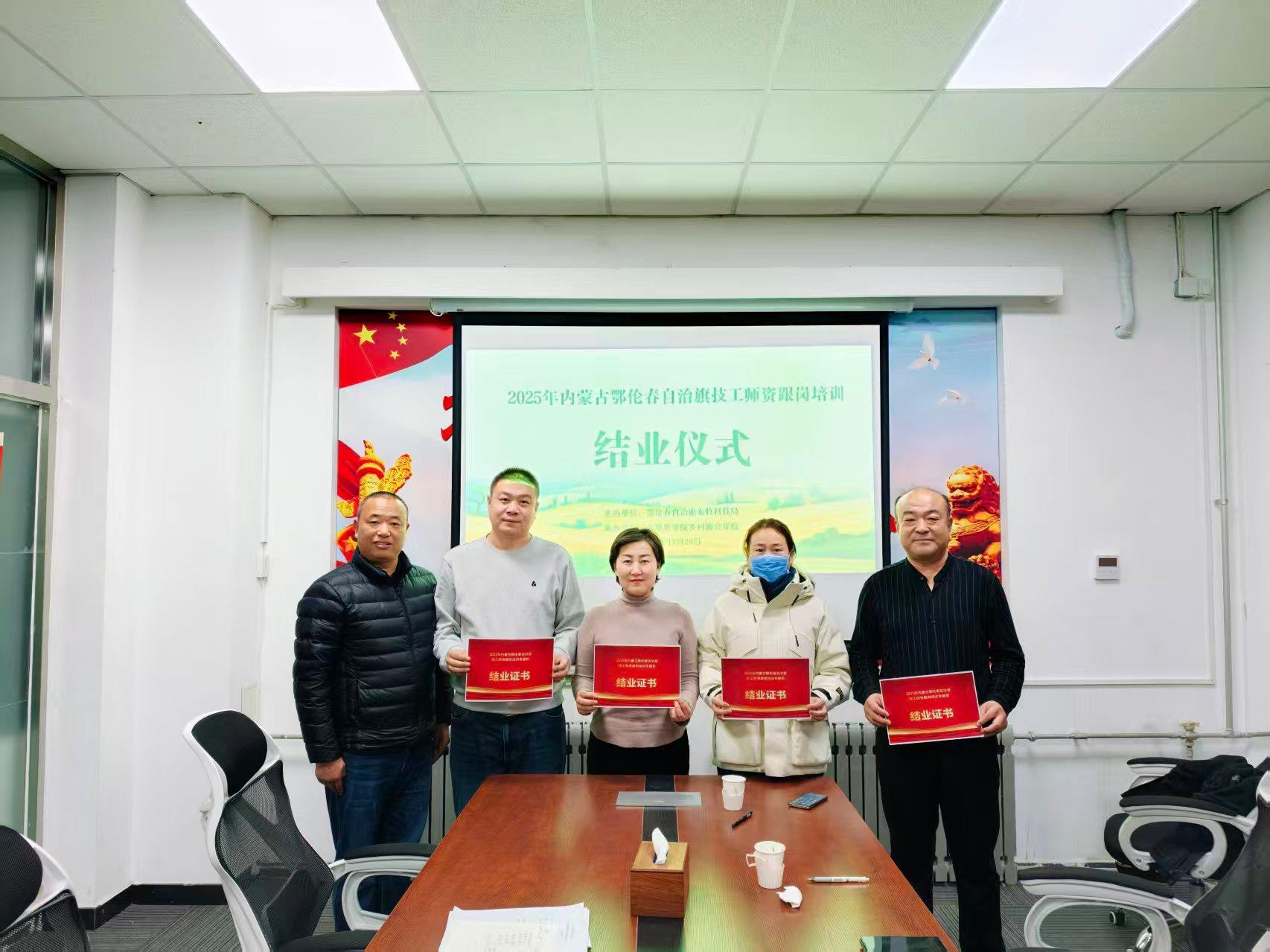 12月29日上午,在伟德国际VICTOR1946乡村振兴公司会议室,4名来自鄂伦春自治旗的学员一一接过结业证书并集体合影,标志着由鄂伦春自治旗农牧科技局委托乡村振兴公司承办的为期30天的“2025年内蒙古鄂伦春自治旗技工团队跟岗培训专题班”圆满落幕,也标志着今年3期每期30天的京蒙协作技能人才交流合作项目顺利完成。